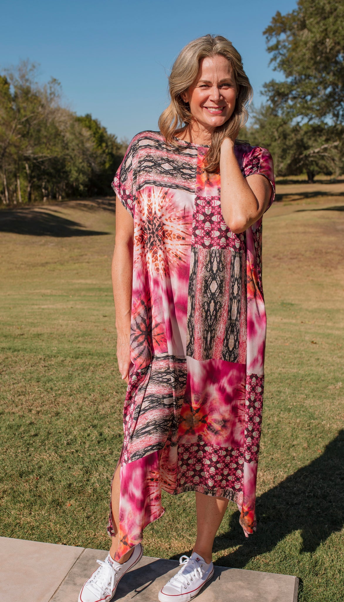 Simple and elegant …. The Perfect Maxi Dress…..The tie back adds a special detail. We also love the ”drippy” sides and side slits.